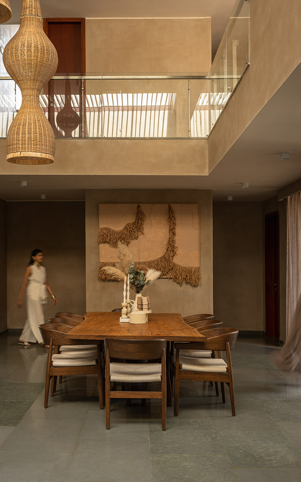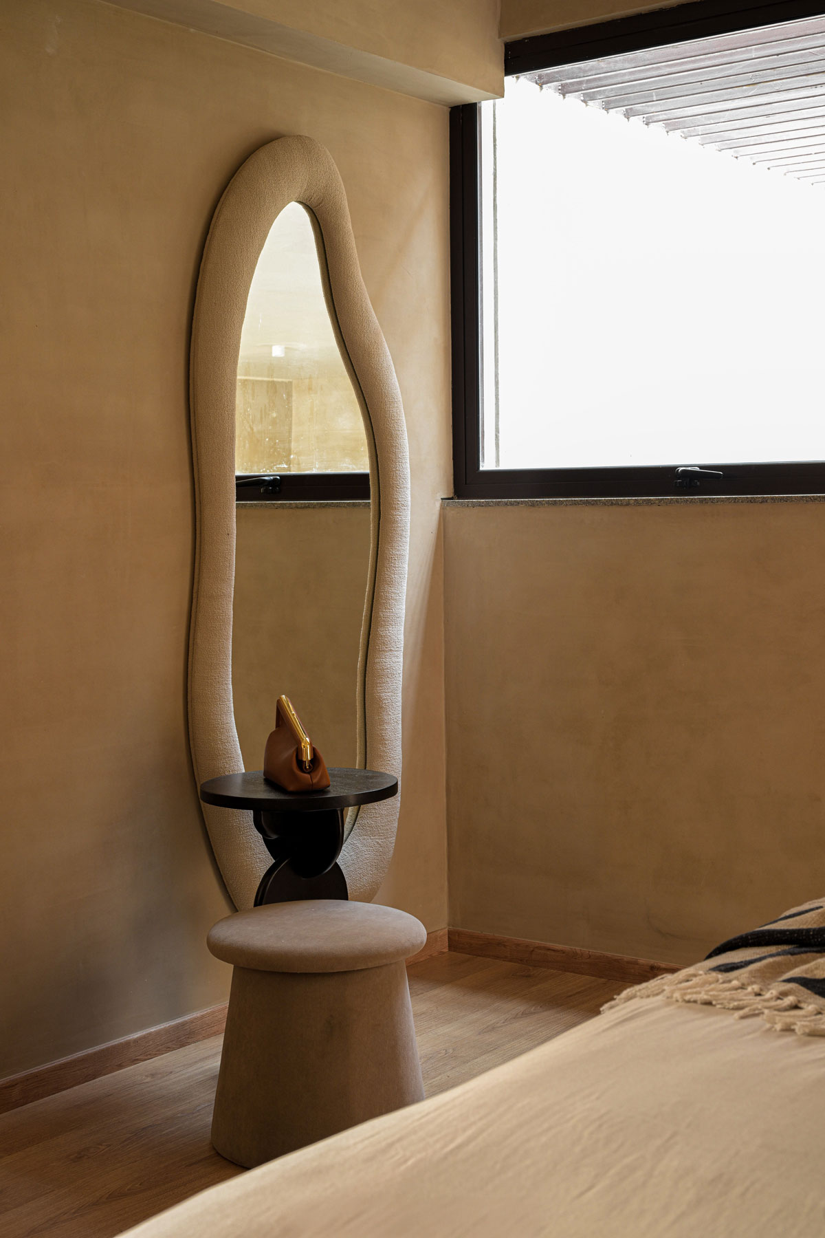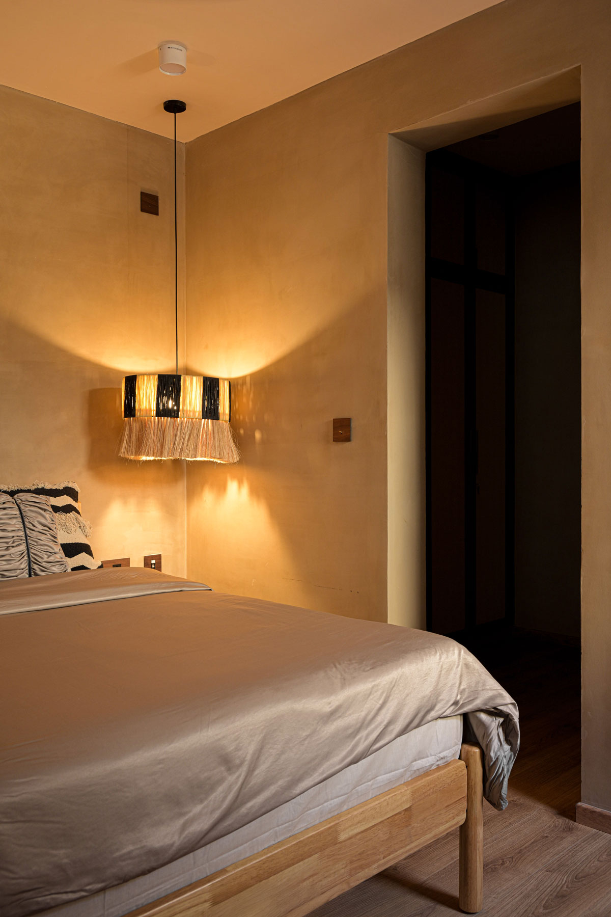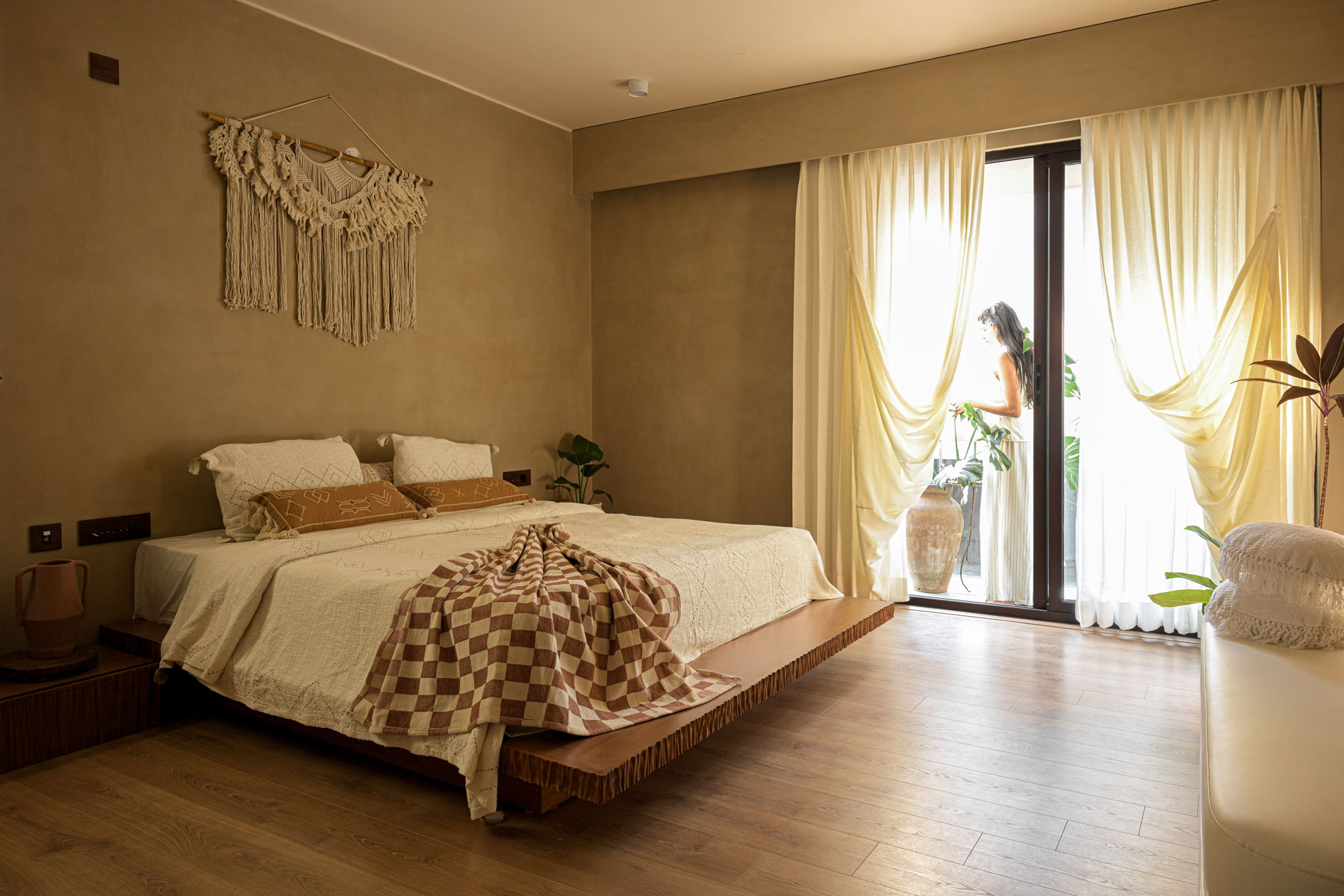 Earthy lime-plastered walls, solid wood furniture, woven elements, and soft neutral textiles come together to create a calm, tactile interior language. Carefully balanced natural light and warm ambient lighting enhance the spatial softness, while handcrafted details lend depth and character. The design embraces simplicity, comfort, and timelessness – resulting in serene, earthy spaces that feel rooted, intimate, and enduring.