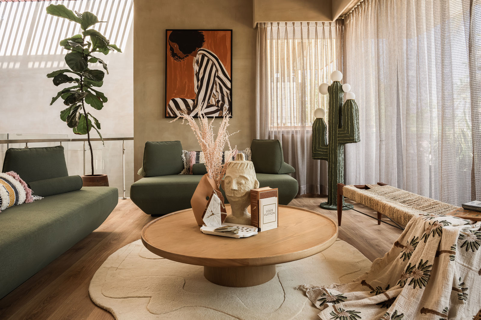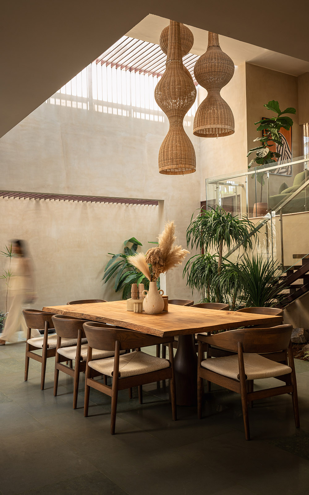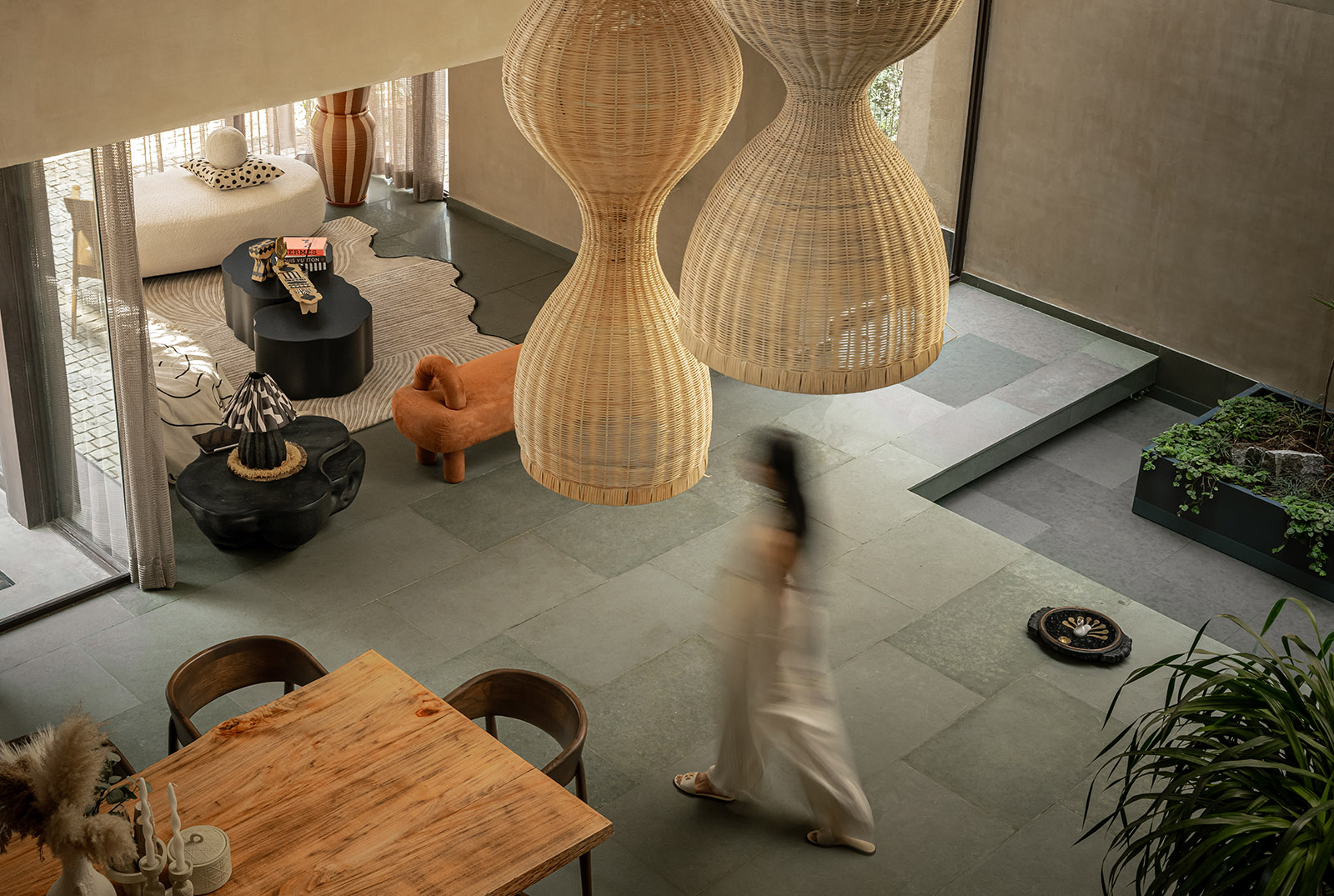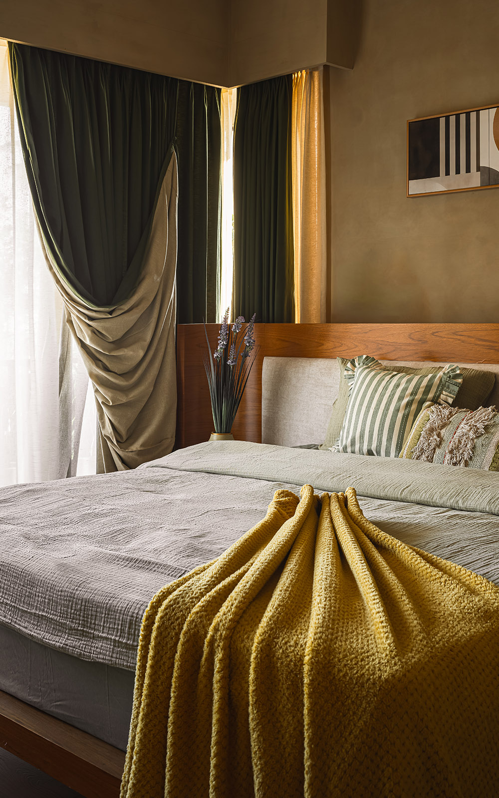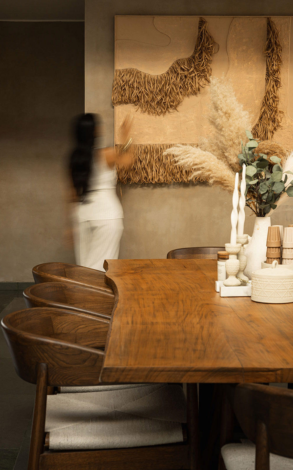 Earthy lime-plastered walls, solid wood furniture, woven elements, and soft neutral textiles come together to create a calm, tactile interior language. Carefully balanced natural light and warm ambient lighting enhance the spatial softness, while handcrafted details lend depth and character. The design embraces simplicity, comfort, and timelessness – resulting in serene, earthy spaces that feel rooted, intimate, and enduring.